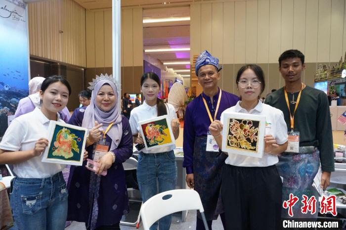 9月26日,第21屆中國(guó)—東盟博覽會(huì)旅游展區(qū)在桂林國(guó)際會(huì)展中心開館。邀請(qǐng)柬埔寨擔(dān)任主賓國(guó),來自境外43個(gè)國(guó)家和地區(qū)的駐華機(jī)構(gòu)和企業(yè)參展。本屆旅游展區(qū)以“加深文旅交融 共建‘一帶一路’”為主題,旨在進(jìn)一步加強(qiáng)與東盟各國(guó)在文化旅游領(lǐng)域的合作,致力于構(gòu)建更高層次的交流平臺(tái),為構(gòu)建中國(guó)—東盟命運(yùn)共同體提供更大助力。圖為游客在馬來西亞展館體驗(yàn)繪制彩染手帕。歐惠蘭 攝