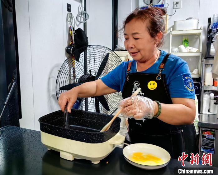 9月23日,王淑娟正在“四姨工坊”早餐店內(nèi)忙碌?!≈行律缬浾?閆旭 攝