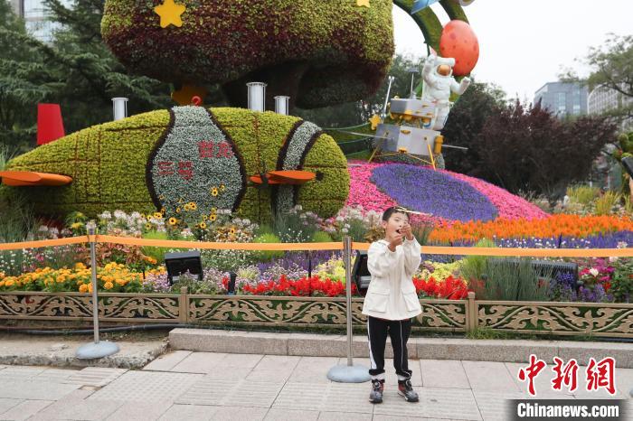 9月28日,北京,位于東單的“大美中國”花壇。中新社記者 王紫儒 攝