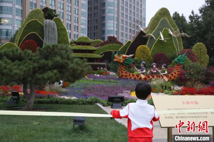 9月28日,北京,小朋友在觀賞“大美中國”花壇。中新社記者 王紫儒 攝