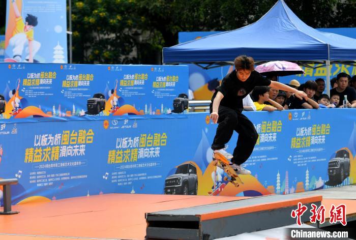 中新社福州10月13日電 (鄭江洛)2024閩臺青年職工滑板文化藝術(shù)嘉年華13日在福州開幕。