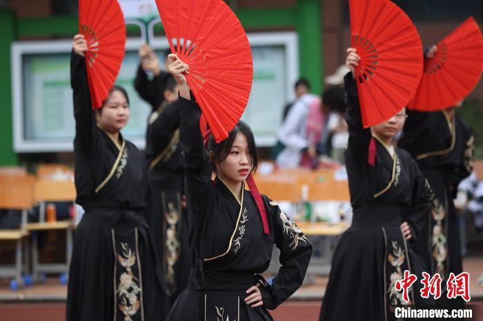 10月17日,江蘇南京,中學(xué)生們?cè)谇锛咎飶竭\(yùn)動(dòng)會(huì)開幕式上表演,用節(jié)目展示江蘇各地特色。中新社記者 泱波 攝