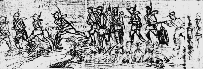 漫畫(huà)“紅軍過(guò)草地”。作者:黃鎮(zhèn)將軍