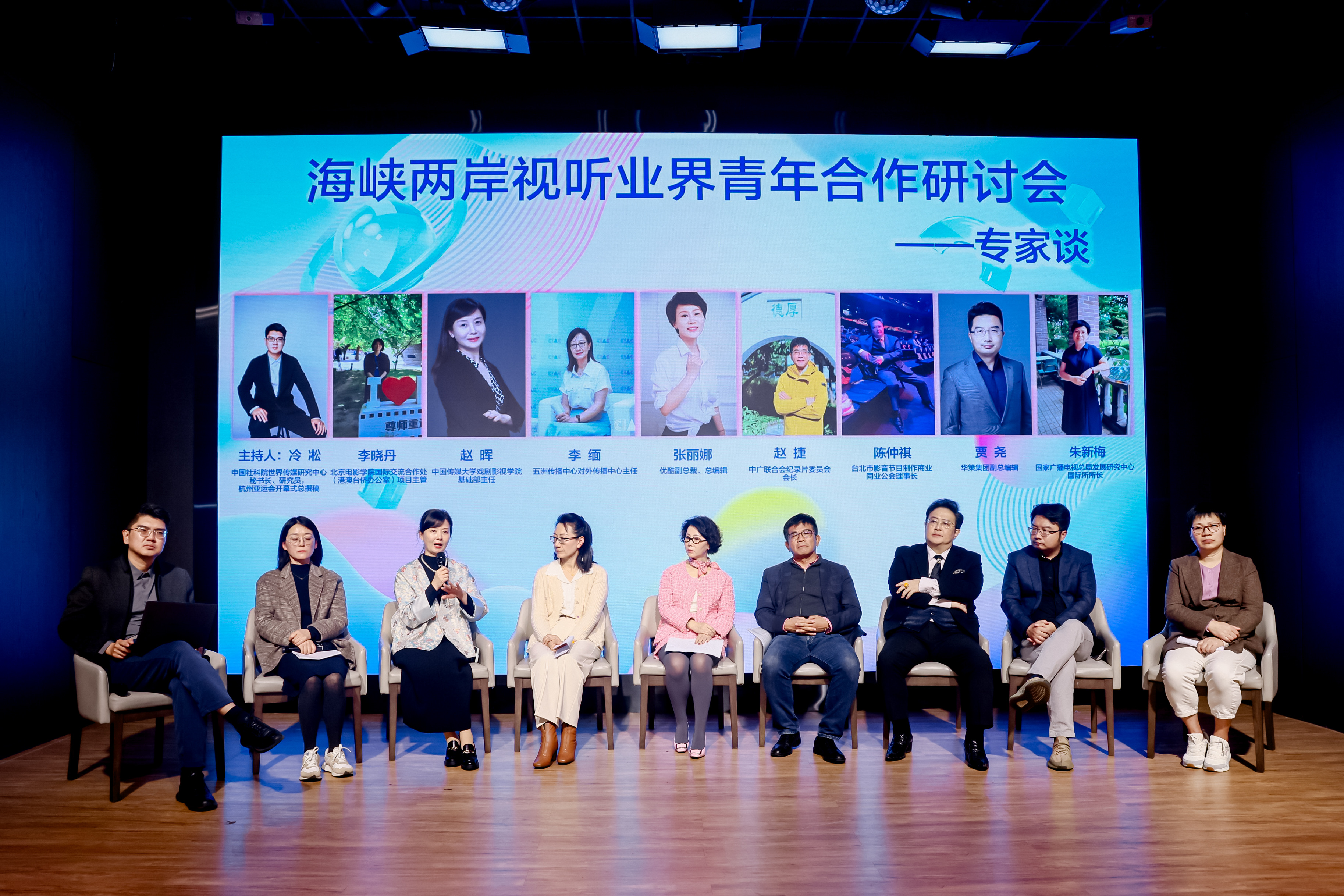 “專家談”圓桌會由中國社科院世界傳媒研究中心秘書長、研究員冷凇主持,海峽兩岸專家針對視聽業(yè)界青年合作現(xiàn)狀進行評說,對怎樣發(fā)展獻上良策。華策集團副總編輯賈堯在談到華策出品的《去有風(fēng)的地方》《向風(fēng)而行》古裝《長歌行》在臺灣傳播狀況時感到,兩岸青年心是相通的,對社會價值與人生的思考具有強烈共鳴。五洲傳播中心對外傳播中心主任李緬,分享了在大IP引領(lǐng)下進行融合傳播的有效做法。中廣聯(lián)合會紀錄片委員會會長趙捷認為,紀錄片的拍攝要解決共情共鳴問題,注意題材為兩岸受眾普遍關(guān)注與接受。優(yōu)酷副總裁、總編輯張麗娜認為,視聽平臺是影視劇綜、動漫、紀錄片聚合體,最重要的責(zé)任是把好內(nèi)容聚在一起,講求兩岸合作傳播的主動性與互動性,特別要在共制劇作上多做工作。中國傳媒大學(xué)戲劇影視學(xué)院基礎(chǔ)部主任趙暉教授,就深化兩岸視聽業(yè)界青年的交流合作,從視聽業(yè)頂層設(shè)計機制創(chuàng)新、人才孵化機制改革、合拍合作機制突破、整體運營機制展望等維度提出深刻見解。臺北市影音節(jié)目制作商業(yè)同業(yè)公會理事長陳仲祺、廣電總局發(fā)展研究中心國際所所長朱新梅、北京電影學(xué)院港澳臺辦公室項目主管李曉丹,也分別做了精彩分享。