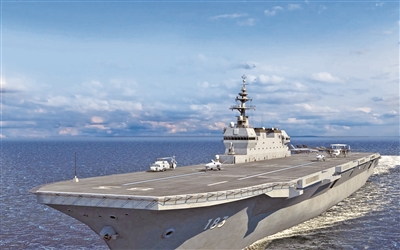 在進(jìn)行改造的同時(shí),日本也尋找可在出云級(jí)驅(qū)逐艦上列裝的其他飛行器。在10月中旬舉行的日本國(guó)際航空航天展覽會(huì)上,美國(guó)通用原子航空系統(tǒng)公司展示一張日本出云級(jí)驅(qū)逐艦渲染圖,圖中除了有2條電磁彈射器和F-35B戰(zhàn)斗機(jī),還有甲板上停放的各型飛機(jī),包括幾架Gambit 5艦載無(wú)人機(jī)。