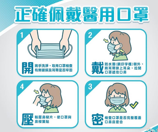 吳岱穎提醒應(yīng)佩戴口罩的3個(gè)時(shí)機(jī),包括出入醫(yī)院時(shí)、有發(fā)燒或呼吸道癥狀時(shí)、免疫力較差時(shí)。使用前應(yīng)先將手洗凈,防水層朝外,拉開口罩、掛上耳朵,遮住口鼻,并且輕壓鼻梁片,最后可呼氣確認(rèn)口罩是否完整覆蓋口鼻。