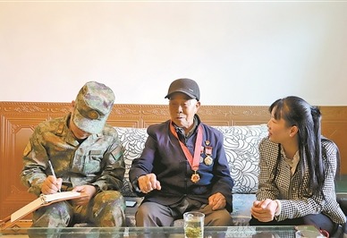 “陳爺爺,您身體還好嗎?我們來看望您了!”“老咯!腿腳不利索了,不能再為國(guó)家作貢獻(xiàn)了。”“您別這么說。這次過來是想告訴您,之前我們?cè)谀@里采錄的回憶錄出版了,特意來說一聲。”深秋時(shí)節(jié),秀美黔中,貴州省安順市軍地相關(guān)工作人員帶著慰問品走進(jìn)抗美援朝老兵陳應(yīng)達(dá)家中,將一本散發(fā)墨香的《安順抗美援朝實(shí)錄》交到他的手上。