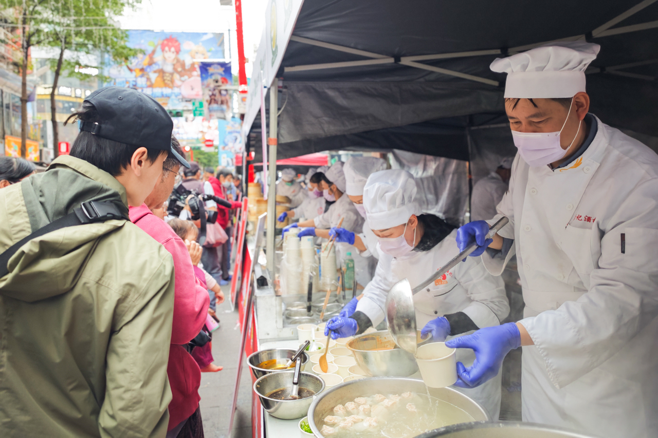 活動(dòng)現(xiàn)場(chǎng),來(lái)自三明沙縣的14位小吃技藝傳承人采用臺(tái)灣本地食材,現(xiàn)場(chǎng)制作拌面、扁肉、水晶燒賣、烙粑、金包銀等一系列經(jīng)典小吃,品種豐富、風(fēng)味地道的沙縣小吃吸引了眾多臺(tái)灣民眾排隊(duì)品嘗。