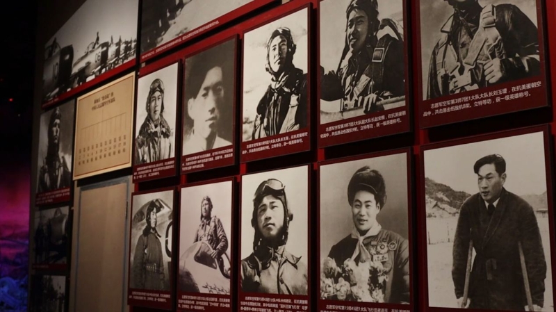 在丹東抗美援朝紀念館,第一代飛行員們的肖像照。人民網記者 邱宇哲攝