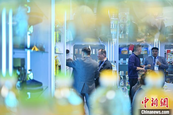 圖為參展商和采購商在哈薩克斯坦展位洽談。中新社記者 陳楚紅 攝