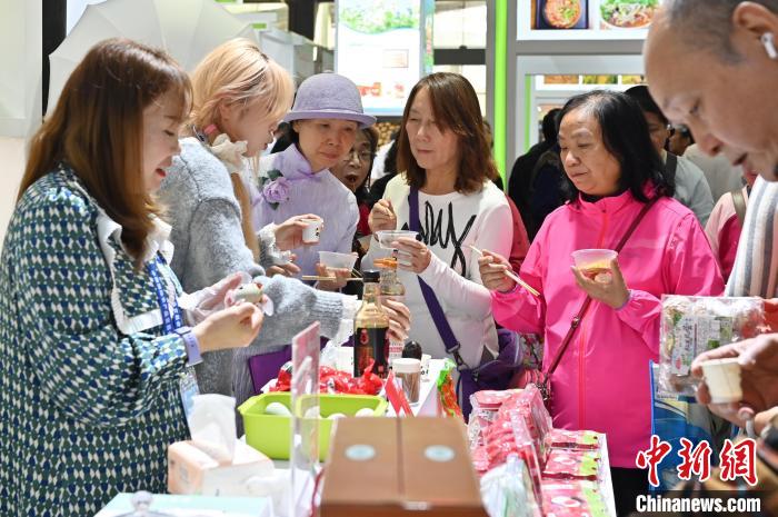 圖為民眾現(xiàn)場試吃品嘗農(nóng)產(chǎn)品。中新社記者 陳楚紅 攝