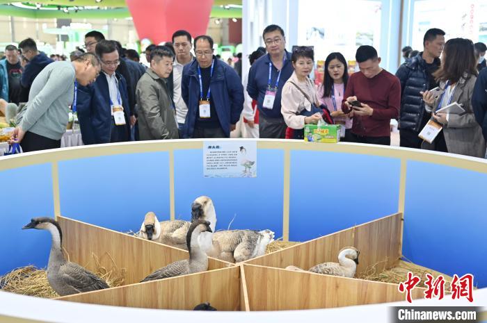 圖為一展位的鵝吸引民眾。中新社記者 陳楚紅 攝