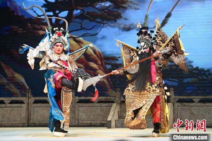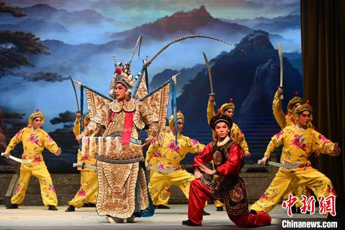 11月29日,廣州市荔灣區(qū),“第二十一屆穗港澳粵劇日”系列活動在粵劇藝術博物館舉行,穗港澳三地粵劇名家齊聚一堂,共襄粵劇盛宴。圖為折子戲《火燒裴元慶》。中新社記者 陳楚紅 攝