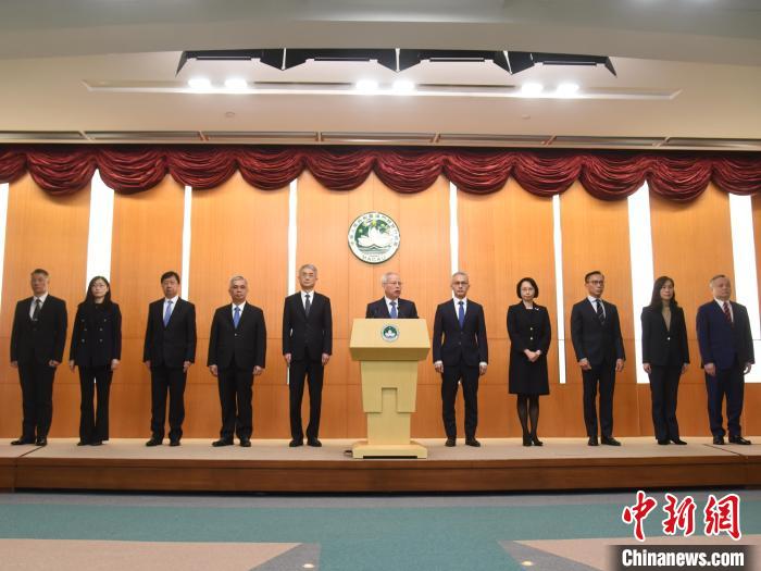 中新社澳門12月1日電 (記者 鄭嘉偉)澳門特區(qū)第六任行政長官岑浩輝1日率澳門特區(qū)第六屆政府主要官員和檢察長在特區(qū)政府總部集體亮相,并接受傳媒采訪。