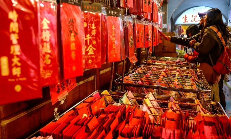 資料圖:民眾選購春聯(lián)、紅包等春節(jié)用品。 香港中通社圖片