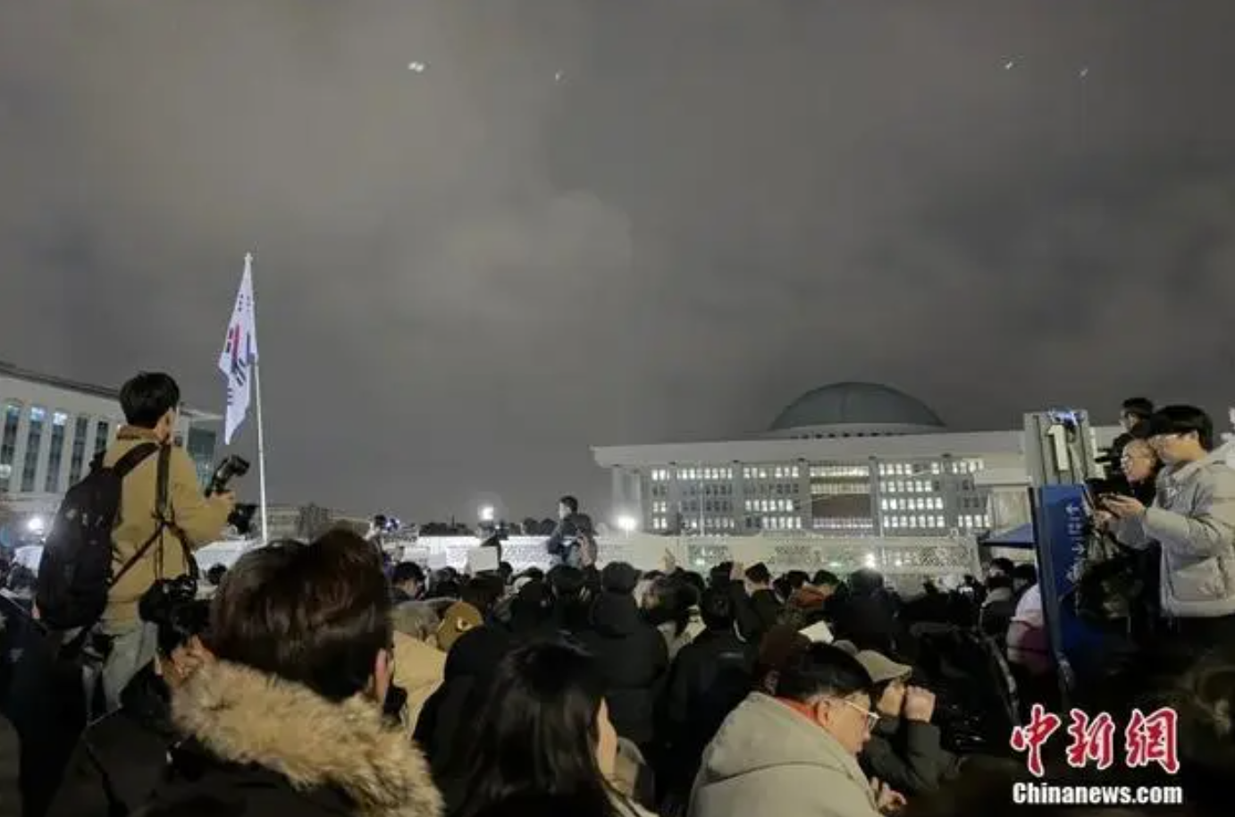 當?shù)貢r間12月3日晚,韓國總統(tǒng)尹錫悅發(fā)布緊急戒嚴令。韓國國會4日凌晨召開全體會議,通過決議要求解除緊急戒嚴令。圖為大批民眾聚集在韓國國會門口。中新社記者 劉旭 攝