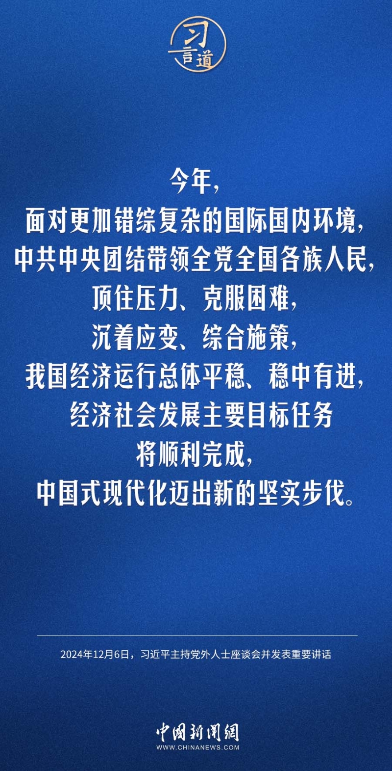 12月6日,中共中央在中南海召開黨外人士座談會,就今年經(jīng)濟(jì)形勢和明年經(jīng)濟(jì)工作聽取各民主黨派中央、全國工商聯(lián)負(fù)責(zé)人和無黨派人士代表的意見和建議。中共中央總書記習(xí)近平主持座談會并發(fā)表重要講話強(qiáng)調(diào)——