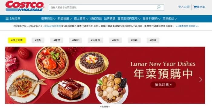 距離2025年春節(jié)還有不到50天,臺灣許多餐廳、超市已開始進行年菜預購。近日有某臺灣網紅發(fā)現(xiàn),零售商Costco(臺灣稱“好市多”,大陸稱“開市客”)在臺灣官網刊登的年菜預購廣告,英文介紹寫的是“Chinese New Year”,隨后其發(fā)信給好市多,讓好市多“考慮到用字精準的重要性”,而好市多在不到7小時,就將臺灣官網原本的“Chinese New Year”改為“Lunar New Year”。此事已在島內引發(fā)討論。