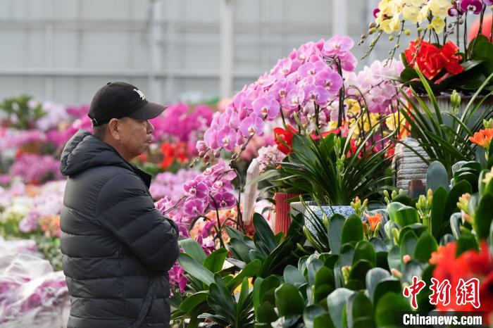 12月25日,北京花卉交易中心,市民在選購年宵花。中新社記者 張祥毅 攝
