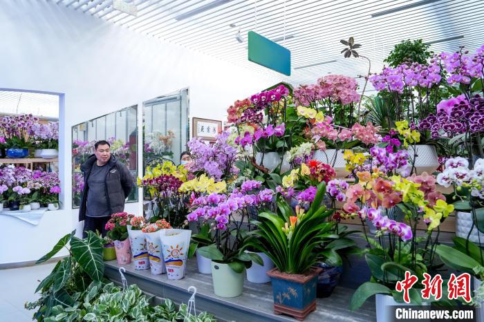 12月25日,北京花卉交易中心,貨架上擺放的年宵花吸引消費者。中新社記者 張祥毅 攝