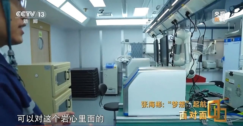 張海彬:就等著我們正式鉆探取出來(lái)巖心之后,在這里進(jìn)行科學(xué)實(shí)驗(yàn)分析。