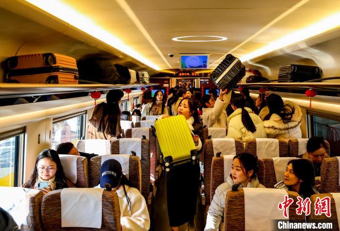 圖為旅客搭乘G885次復(fù)興號(hào)列車從武漢前往香港。中新社記者 張暢 攝
