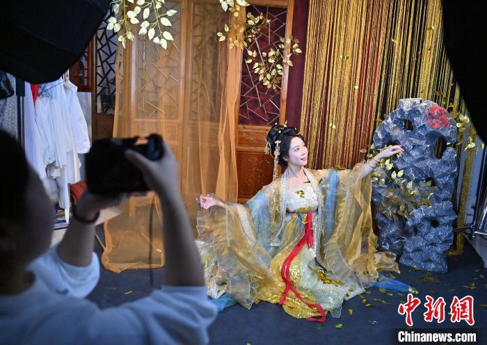 1月6日,吉林長春,市民在拍攝漢服寫真。店家介紹,農(nóng)歷蛇年春節(jié)將至,漢服寫真成了顧客新需求,店家特推出百梅迎春、金蛇賀歲、招財進寶等主題,深受市民喜愛。中新社記者 張瑤 攝