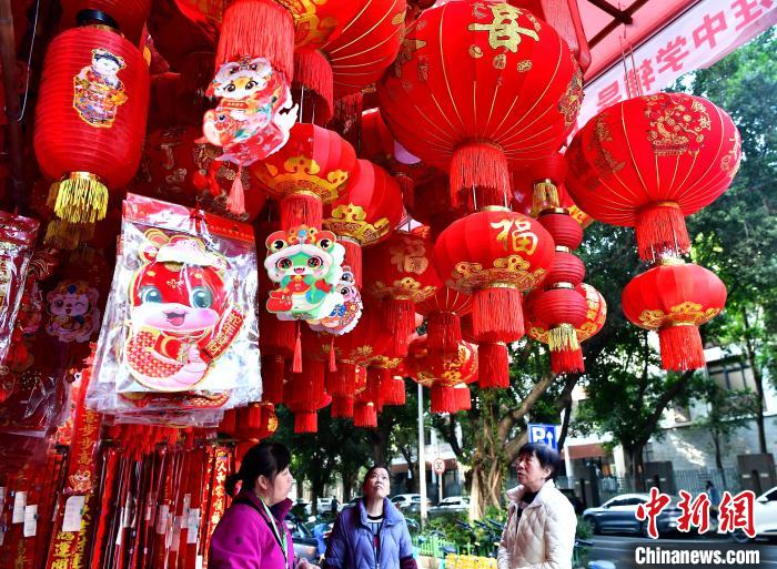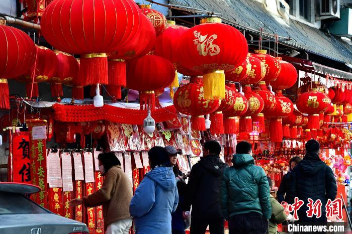 1月19日,市民在選購春節(jié)飾品。春節(jié)臨近,福州市民忙著選購春聯(lián)、中國結(jié)、紅燈籠等年貨。中新社記者 張斌 攝