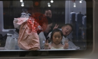 1月20日,北京,小朋友觀看蛇形彩燈。春節(jié)臨近,琉璃廠文化街裝點(diǎn)各式新春裝飾,年味漸濃。中新社記者 王紫儒 攝