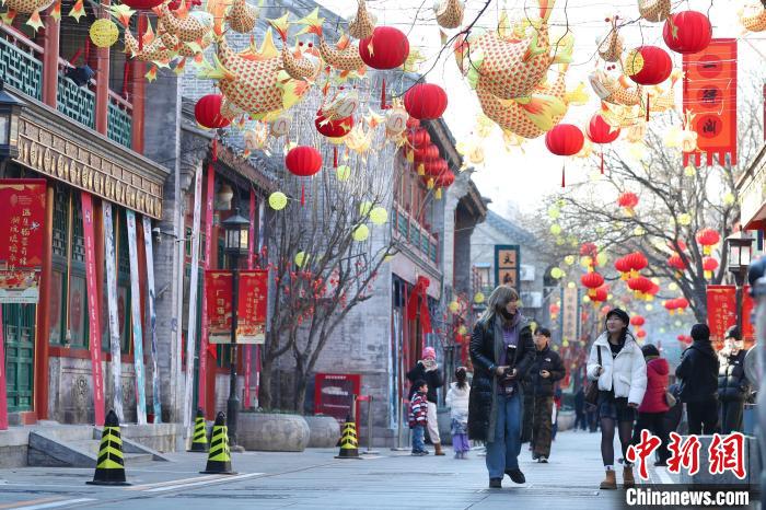 1月20日,北京,游客游覽琉璃廠文化街。春節(jié)臨近,琉璃廠文化街裝點(diǎn)各式新春裝飾,年味漸濃。中新社記者 王紫儒 攝