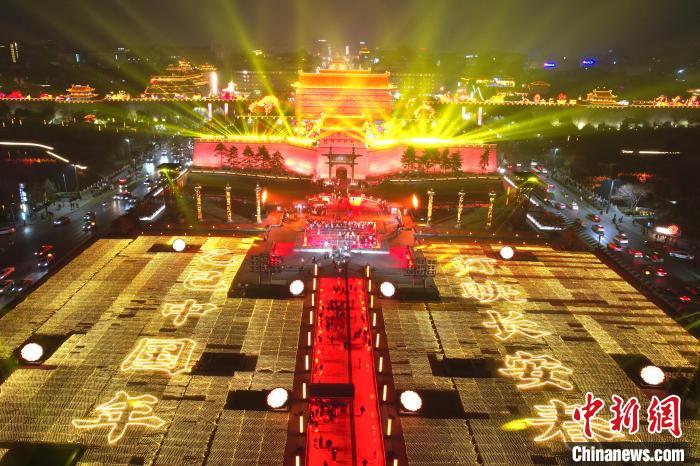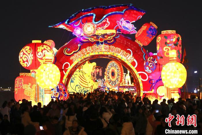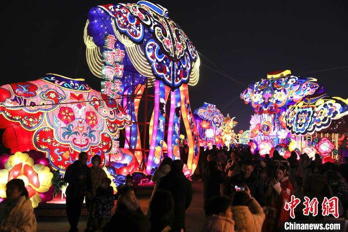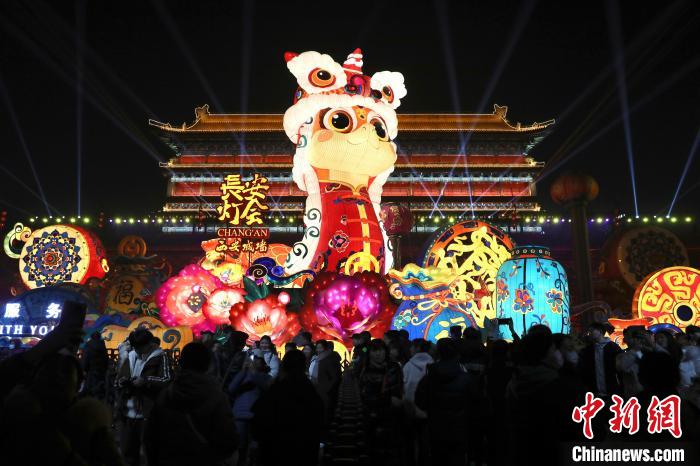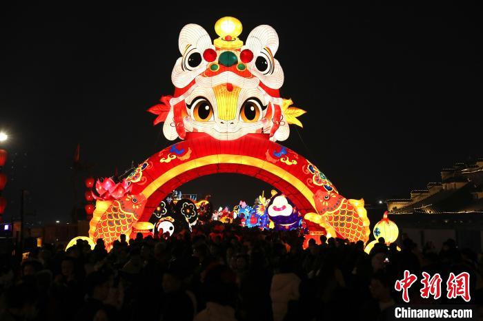 1月22日,陜西西安,以“乙巳中國年·燈映長安春”為主題的第38屆西安城墻新春燈會正式亮燈,為期47天。圖為燈會現(xiàn)場。中新社記者 張遠(yuǎn) 攝