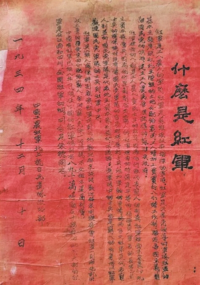 為創(chuàng)建新的革命根據(jù)地,紅25軍在庾家河會(huì)議同一天,以中國(guó)工農(nóng)紅軍北上抗日第2先遣隊(duì)政治部的名義,編印了《什么是紅軍》的傳單,就中國(guó)工農(nóng)紅軍的性質(zhì)、宗旨、任務(wù)及有關(guān)政策,作了通俗而有力的宣傳。“紅軍是工人農(nóng)民的軍隊(duì),紅軍是蘇維埃政府指揮的軍隊(duì),紅軍是共產(chǎn)黨領(lǐng)導(dǎo)的軍隊(duì)”“紅軍的基本主張是沒(méi)收地主階級(jí)的土地分配給農(nóng)民”……幾百字的一頁(yè)傳單,在廣大群眾中產(chǎn)生重要作用,擴(kuò)大了黨和紅軍的影響。