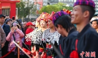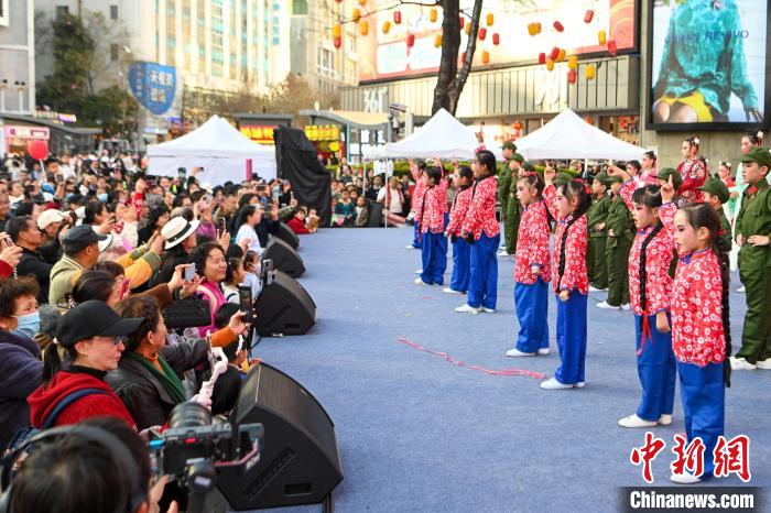 1月23日,演員在昆明南屏步行街巡演“目瑙縱歌”。當(dāng)日,2025年“非遺賀新春——云南非遺過(guò)大年”系列活動(dòng)在昆明市啟動(dòng),舞龍、舞獅、新年巡游等傳統(tǒng)春節(jié)習(xí)俗為市民帶來(lái)沉浸式的年味盛宴。中新社記者 李嘉嫻 攝