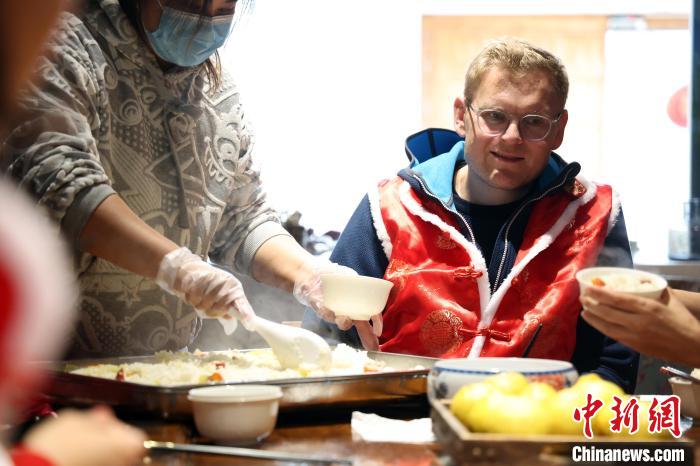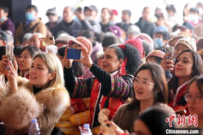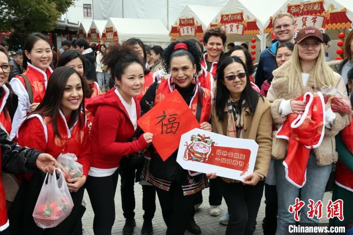 1月24日,在上海市閔行區(qū)嚴家灣舉行的“村晚”吸引了不少在滬外籍人士走進美麗鄉(xiāng)村,逛新春集市、品嘗農(nóng)家飯、做中國結(jié),感受濃濃的中國年味,與當?shù)卮迕褚黄鹩蛹磳⒌絹淼闹袊r(nóng)歷新年。中新社記者 湯彥俊 攝