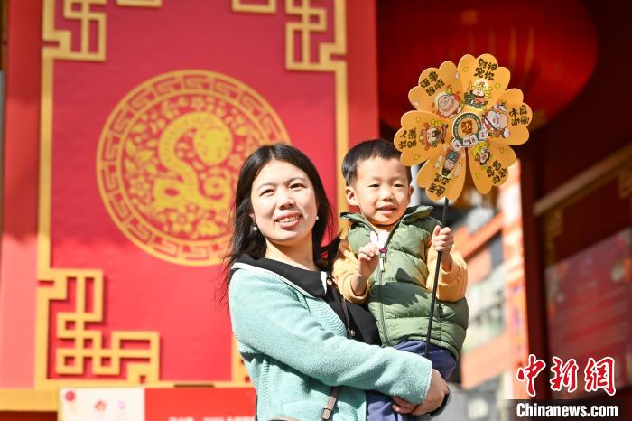 1月25日,廣東廣州,已有百年歷史的廣州西湖花市開市迎客。圖為市民手持風(fēng)車游覽西湖花市。中新社記者 陳驥旻 攝