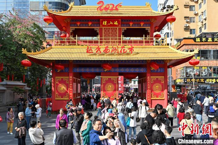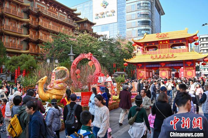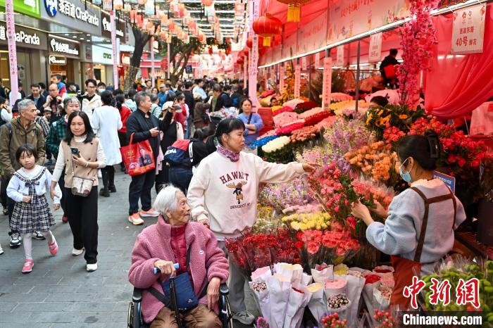 1月25日,廣東廣州,已有百年歷史的西湖花市開市迎客。圖為西湖花市客流如織。中新社記者 陳驥旻 攝