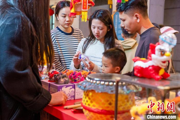 春節(jié)前夕,廣西梧州市萬秀區(qū)騎樓城新春集市迎來許多民眾,民眾在帶孩子逛街游玩的過程中置辦年貨、品當(dāng)?shù)孛朗?。圖為梧州市的騎樓城。何華文 攝
