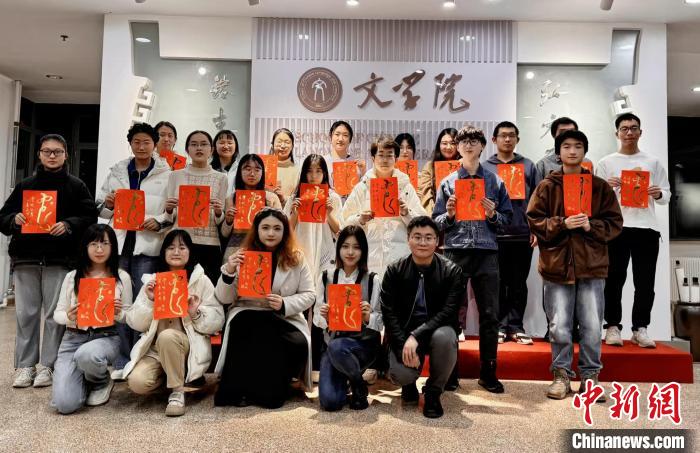 乙巳蛇年的腳步越來越近,北京師范大學文學院里滿是紅火的年味。各面玻璃、書柜貼著琳瑯滿目的“新桃”,當中有張稍顯抽象的圖案,略懂書法的人看到它往往會心一笑——一張化用了甲骨文、金文、小篆元素的“蛇”字,側邊寫著“靈蛇起舞 萬象更新”。