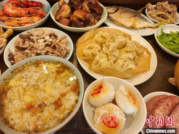 擺上高橋松餅、下沙燒賣,用大團龍?zhí)毒漆勚笊弦诲仠珗A,望著年夜飯餐桌上添加的這三道上海特色菜,再貼上一幅親手寫的“?!弊?,來自臺灣新竹的黃涓喻感嘆這個春節(jié)“儀式感拉滿”。