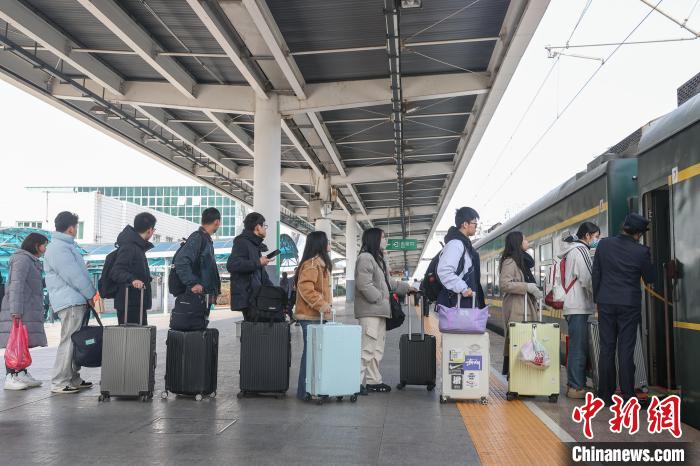 2月4日,江西贛州站,眾多旅客從站臺(tái)上走過(guò)。當(dāng)日,據(jù)中國(guó)國(guó)家鐵路集團(tuán)有限公司發(fā)布的數(shù)據(jù)顯示,2月3日正月初六,全國(guó)鐵路發(fā)送旅客1645.4萬(wàn)人次,創(chuàng)春運(yùn)單日旅客發(fā)送量歷史新高,運(yùn)輸安全平穩(wěn)有序。2月4日正月初七,全國(guó)鐵路預(yù)計(jì)發(fā)送旅客1690萬(wàn)人次,計(jì)劃加開旅客列車2196列。中新社記者 劉力鑫 攝