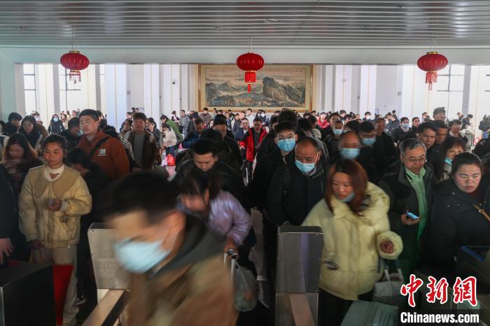 2月4日,江西贛州站,旅客通過(guò)檢票口。中新社記者 劉力鑫 攝