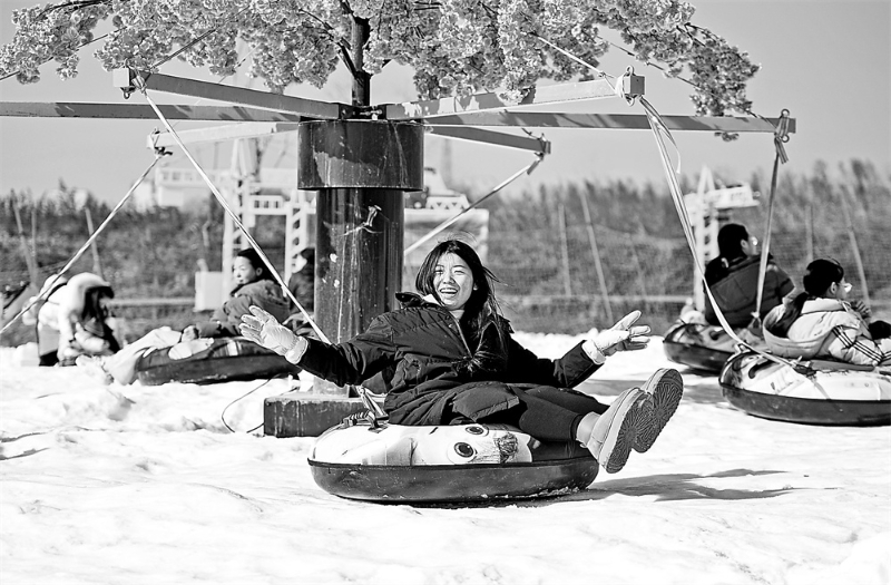 1月19日,游客在河北省邯鄲市東高河村滑雪場內(nèi)游玩。新華社記者 王 曉攝