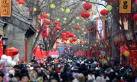 2月5日傍晚,江蘇南京,溧水魏家村“魏家雙龍”走家串戶。溧水的舞龍活動(dòng)有四百多年的歷史,今年春節(jié)期間,當(dāng)?shù)亻_展多種形式的民俗活動(dòng),近40條大龍起舞,熱鬧迎春。