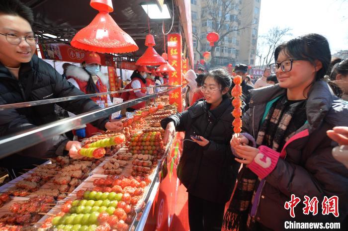 2月9日,民眾購(gòu)買(mǎi)糖球。當(dāng)日,位于青島市市北區(qū)的2025年青島蘿卜·元宵·糖球會(huì)海云庵會(huì)場(chǎng)開(kāi)街,豐富多彩的迎接元宵節(jié)活動(dòng)吸引大量民眾參與。蘿卜·元宵·糖球會(huì)擁有百年歷史,是當(dāng)?shù)刂匾拿袼谆顒?dòng)之一。王海濱 攝