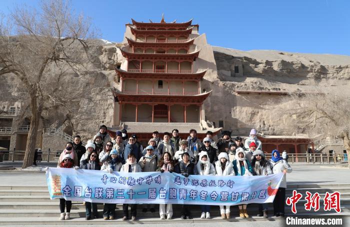 1月16日,全國(guó)臺(tái)聯(lián)第三十一屆臺(tái)胞青年冬令營(yíng)甘肅分營(yíng)的營(yíng)員們參訪敦煌莫高窟。楊娜 攝(來(lái)源:中新網(wǎng))