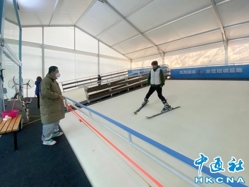 資料圖:滑雪愛(ài)好者在北京東四環(huán)附近的旱地滑雪場(chǎng)滑雪。 香港中通社圖片