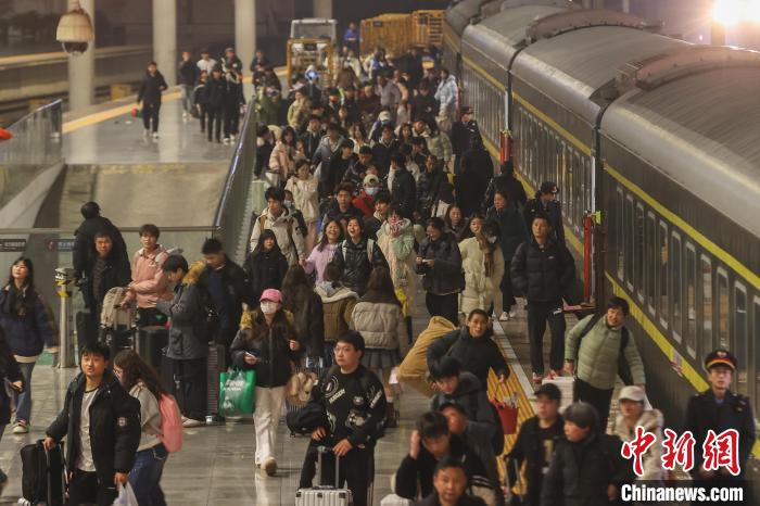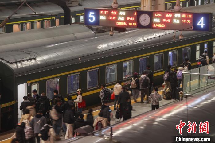 2月16日,江西南昌站,旅客從站臺(tái)上走過(guò)。當(dāng)日,中國(guó)鐵路南昌局集團(tuán)有限公司(簡(jiǎn)稱“南鐵”)發(fā)布消息稱,受學(xué)生返校和周末旅游客流相互疊加影響,南鐵迎來(lái)元宵節(jié)后春運(yùn)客流最高峰,預(yù)計(jì)發(fā)送旅客122.9萬(wàn)人次。中新社記者 劉力鑫 攝
