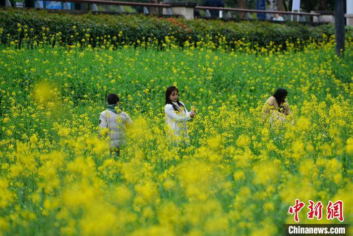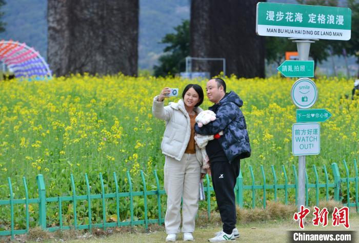 2月18日,游客在福州花海公園游覽、賞花。福州花海公園油菜花迎來最佳觀賞期,吸引不少市民、游客前去游覽。中新社記者 呂明 攝