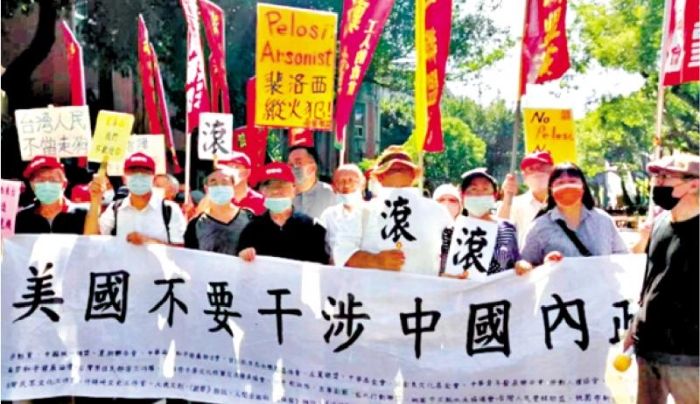 圖:臺灣民眾游行示威,批評美國政府插手臺灣問題破壞臺海和平。\資料圖片