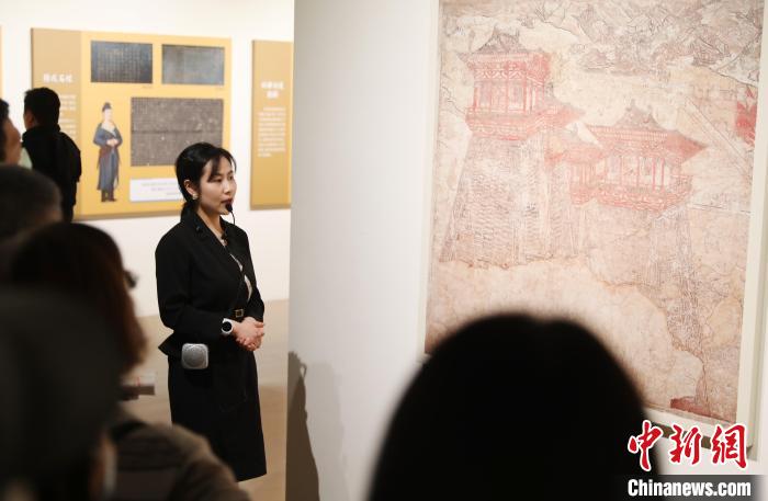 2月25日,受邀赴臺(tái)參加展覽活動(dòng)的陜西歷史博物館社會(huì)教育部館員黃姣為參觀者講解唐代壁畫(huà)。中新社記者 楊程晨 攝